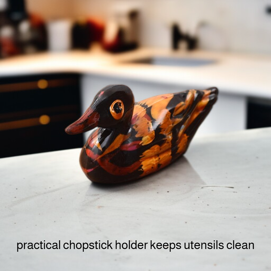 Adorable duck design enhances dining décor, keeps chopsticks clean and organized, made of durable material, suitable for home or restaurant use, easy to clean and maintain.