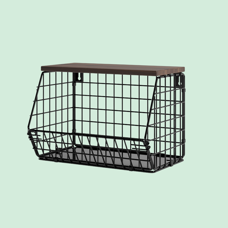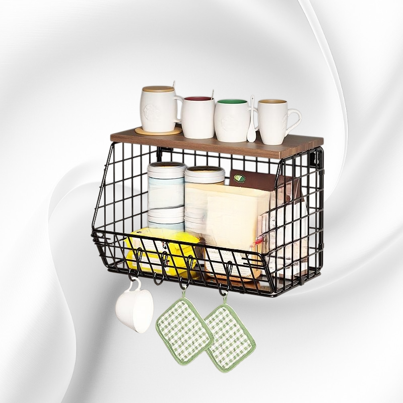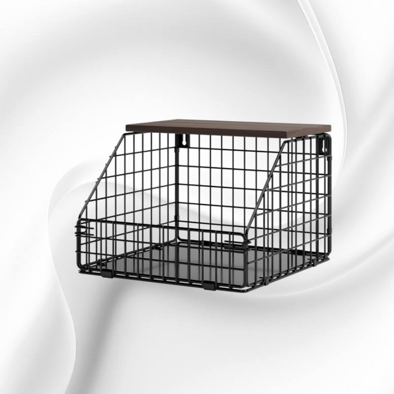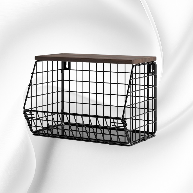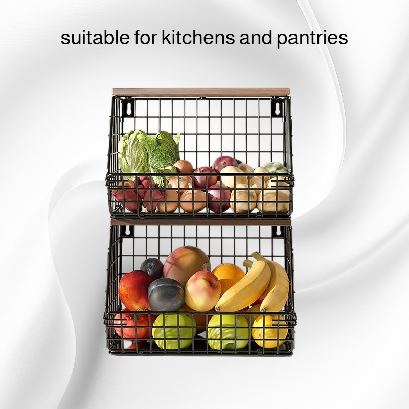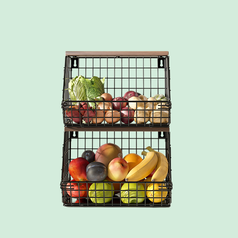 Thickened Iron & Wood Wall Shelf, Foldable Vegetable and Fruit Organizer