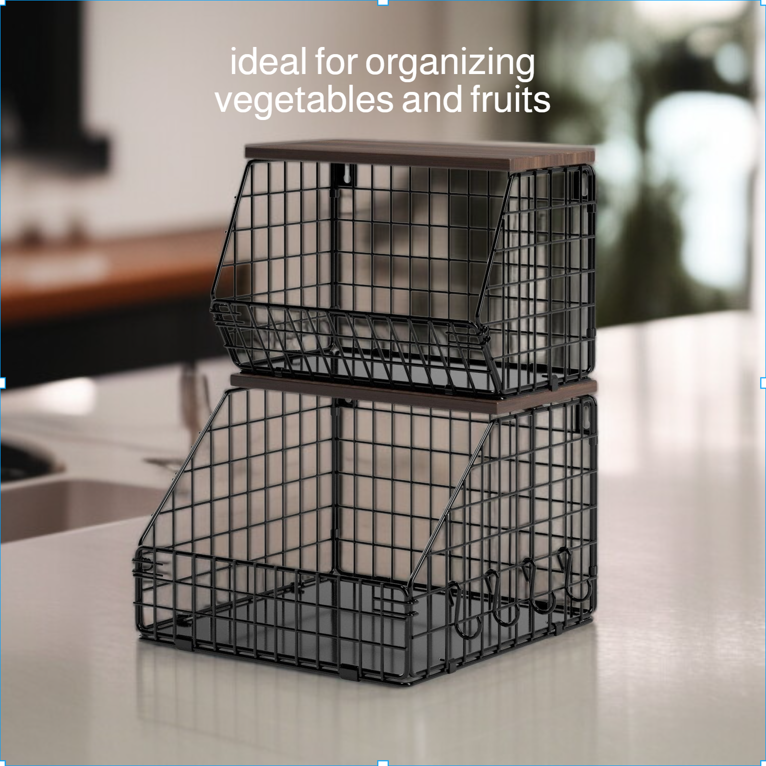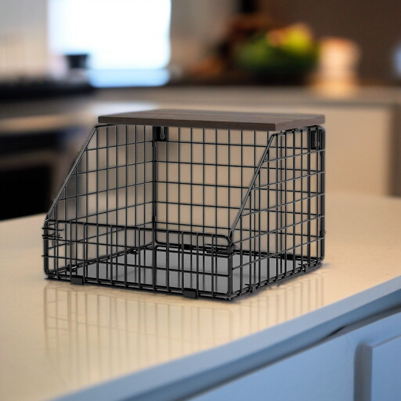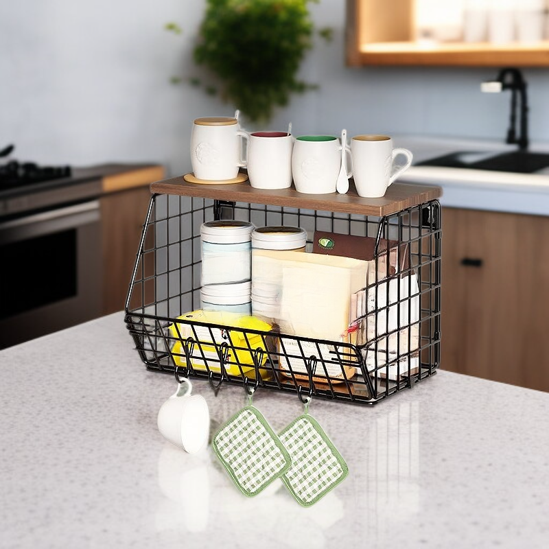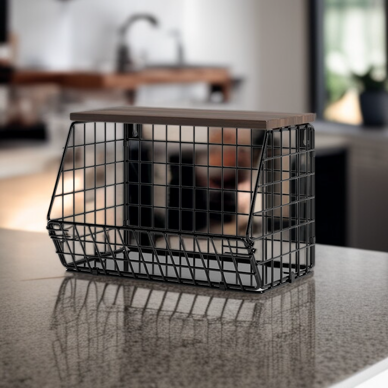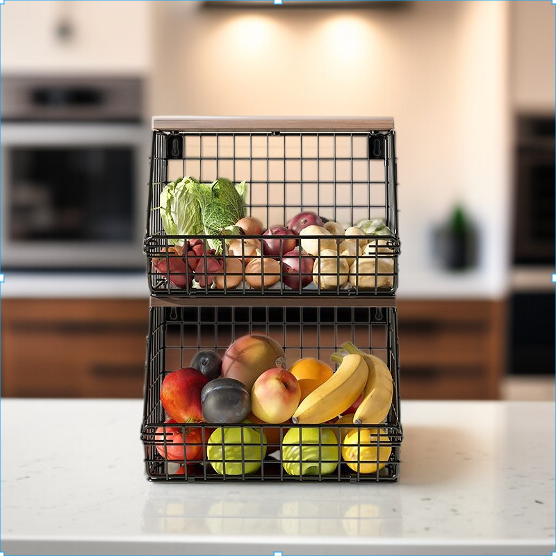 Thickened Iron & Wood Wall Shelf, Foldable Vegetable and Fruit Organizer