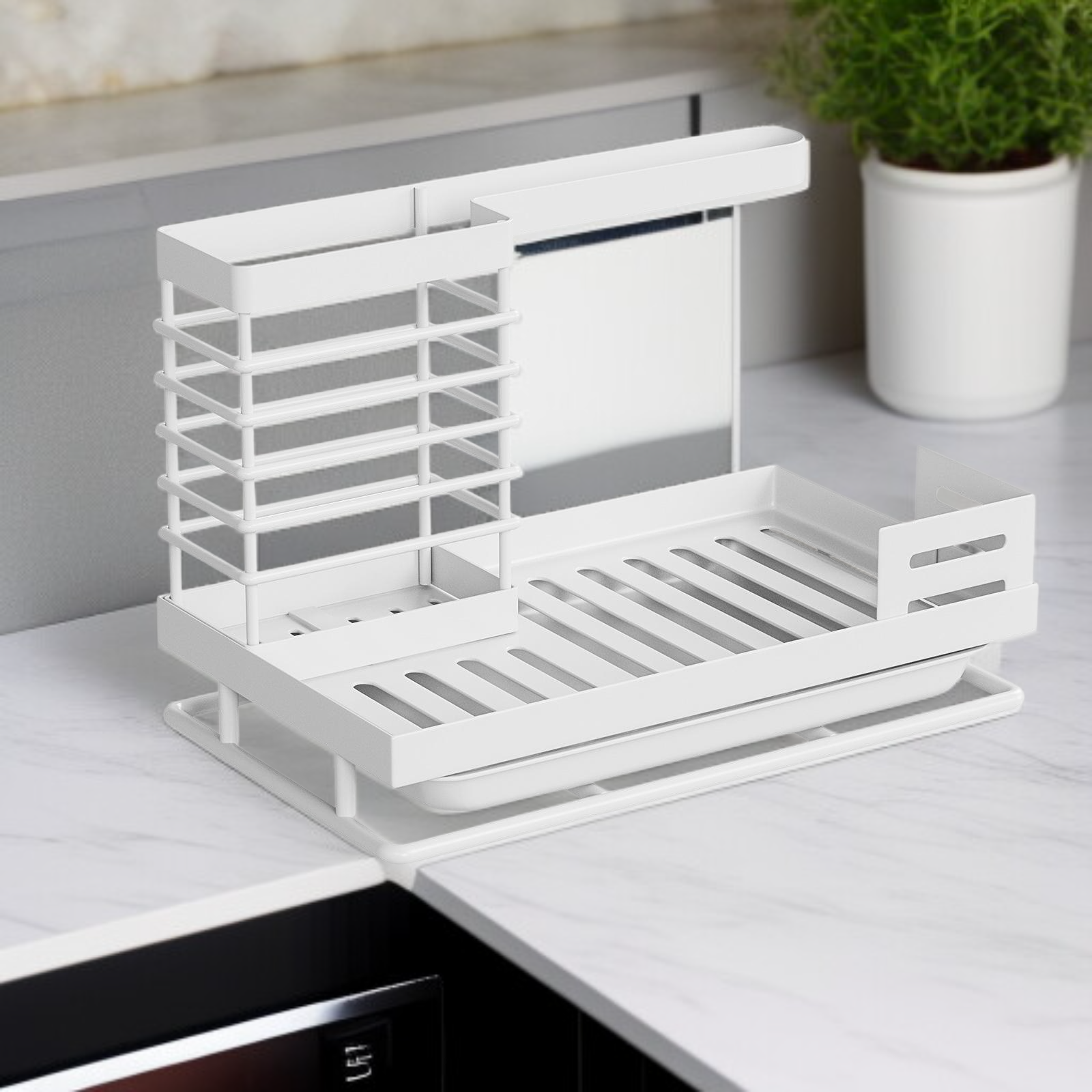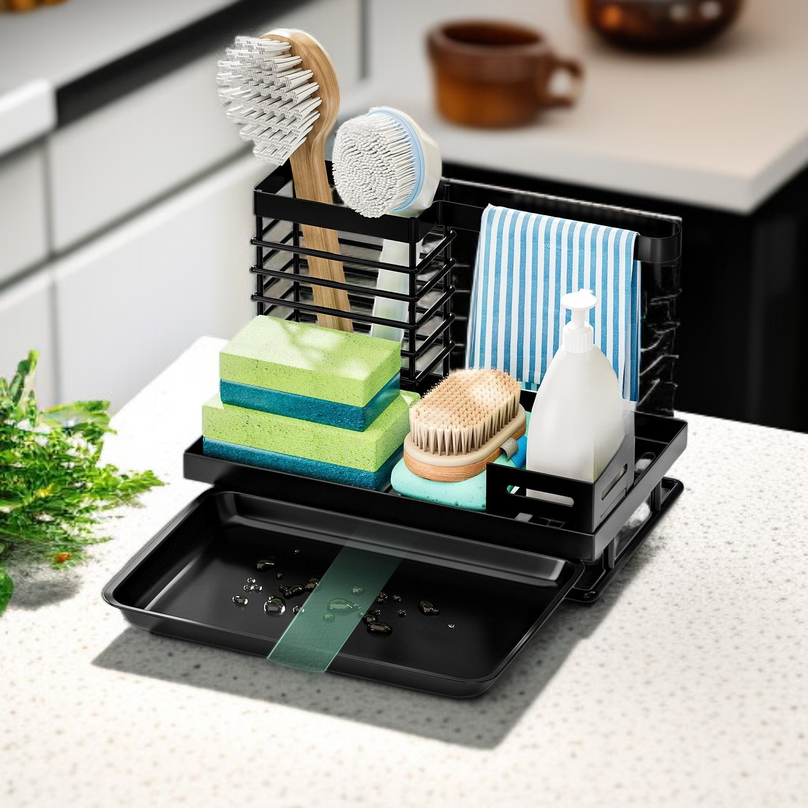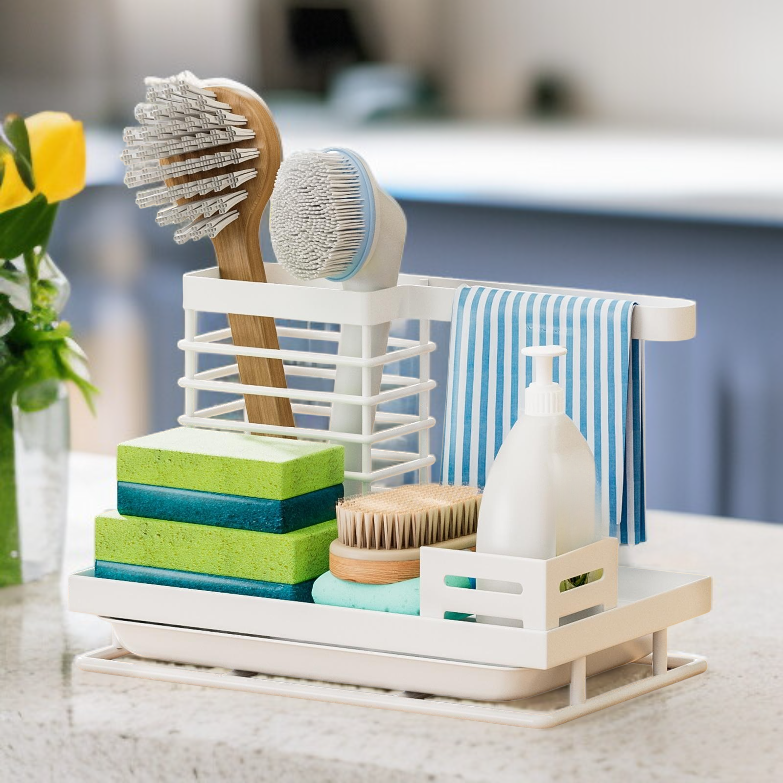 Organize sponges and towels efficiently with a durable, rust-resistant rack. Space-saving design fits most sinks. Quick drainage keeps items dry and clean. Easy to install and maintain.