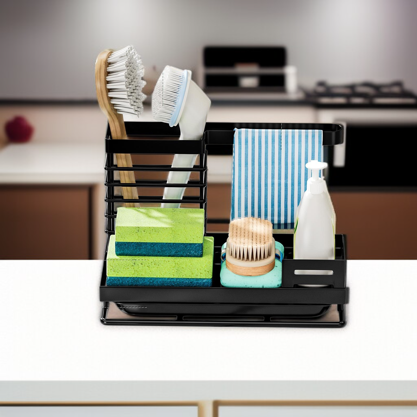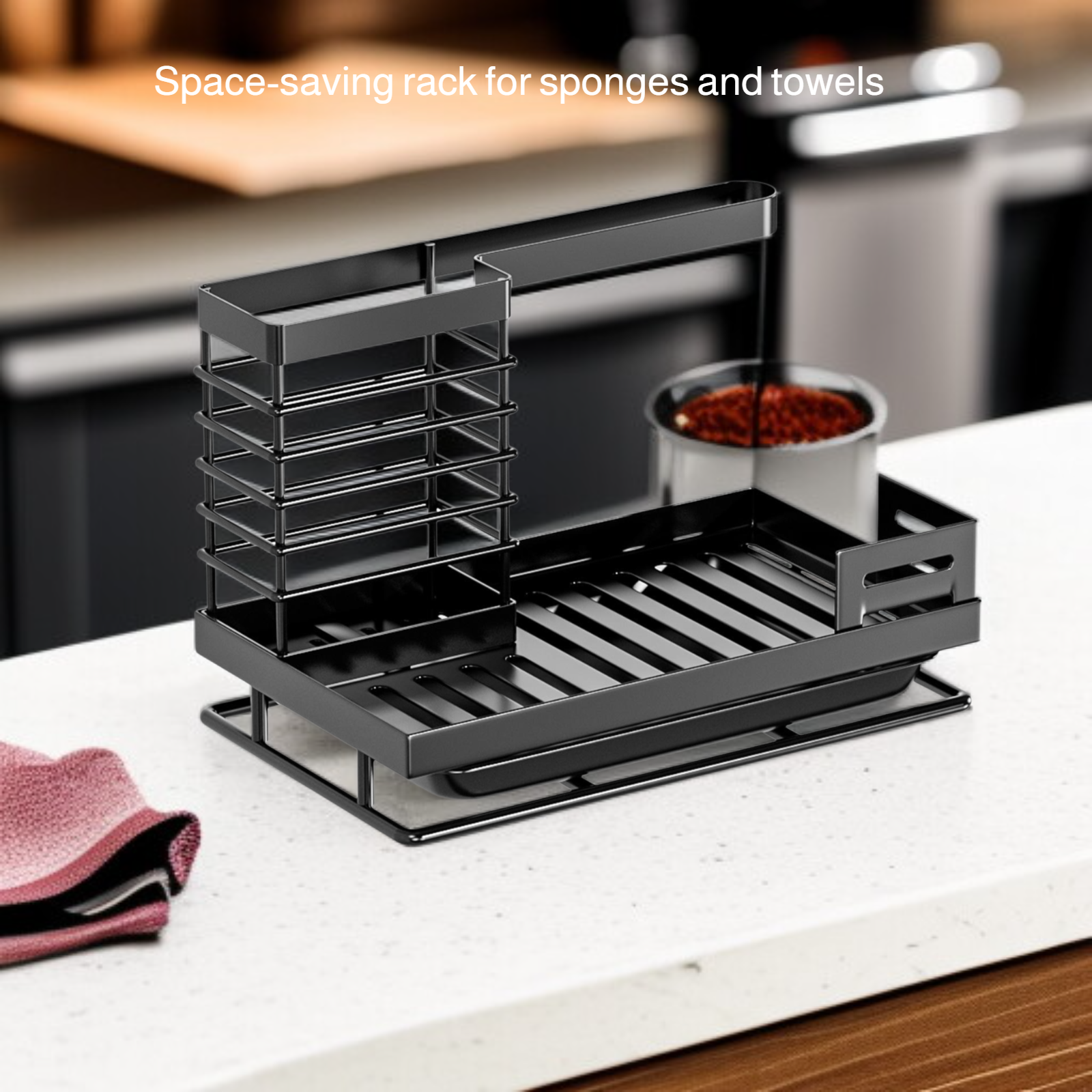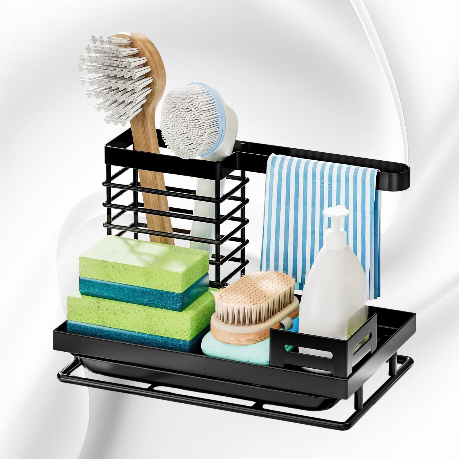 Multi-functional Kitchen Sink Sponge and Towel Rack